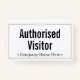 This minimalist badge design features the message "Authorised Visitor", and a customisable company name or other custom message. It also features a double-line border. A badge like this could perhaps be used to indicate that a person is a known and authorised guest or visitor at a business or workplace. [~Z0000307]