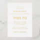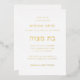 Simple design and text, Black and White with Hebrew, "בת מצוה" Bat Mitzvah Invitation. Minimalist layout in real gold foil. Choose from gold, rose gold or silver foil on custom colour background to match your event.