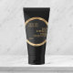 a simple minimalist beauty label with a black background and woven gold border