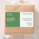 a simple minimalist beauty label in green and white. This label contains space for your product name, business name, product weight, ingredients, instructions, social media, and business address. This label measures 3.75 inches by 2 inches (95 mm by 51 mm) and is suitable for bottles with a diameter of 1.2 inches (31 mm) or more such as 4 oz (120 ml) bullet, cylinder, and boston round bottles. It can also be used for cosmetic jars and other types of cosmetics packaging.
