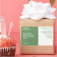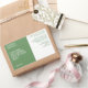 a simple minimalist beauty label in green and white. Contains areas for product usage instructions, ingredients, and your contact information