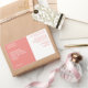 a simple minimalist beauty label in pink and white. Contains areas for product usage instructions, ingredients, and your contact information