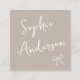 Showcase your brand with timeless elegance using this minimalist beige square business card. Featuring a soft neutral background, modern handwritten script for the name, and a delicate bow illustration, this design blends sophistication with a warm, approachable aesthetic.