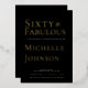 Gold Foil Black Sixty and Fabulous Modern Minimal 60th birthday invitation that you can personalize and send out for your sixtieth birthday party celebration. The words "Sixty and Fabulous" are set using trending bold font typography. Text colors can be changed using the edit menu.