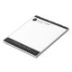 Personalizable design with custom logo, title and subtitle as well as footer text that is ideal for company contact information. The top and bottom have simple black bars with a small stripe.