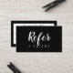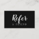 Minimalist black and white elegant script referral card featuring stylish hand-drawn script typography. Personalise by adding your contact information on the reverse with your referral offer. Designed by Thisisnotme©
