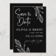 Minimalist Black and White Eucalyptus Leaf Wedding Save The Date