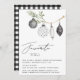 This minimalist Christmas party invitation features a watercolor branch, fun patterned ornaments and calligraphy script text. The back is a watercolor black and white buffalo plaid.