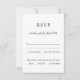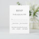 This elegant RSVP card features a crisp white background with classic black typography and a clean, minimalist layout. Guests can quickly reply and indicate attendance, then initial a meal selection for each attendee. A timeless choice for modern, formal, and traditional wedding stationery suites.