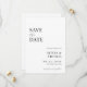 Modern wedding save the date invitation with minimalist typography design in black and white colour. Easily personalise with all of your information for custom wedding save the date cards.