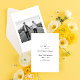 This elegant and formal save the date design features a large photo area. This wedding save the date has a black and white colour palette and classic calligraphy script. All portions of this design are editable and customisable. This design sets the tone for your elegant wedding, helping you create a luxury wedding on a budget. You can find variations of this design in my Zazzle store, Ashlee Townsend Design.