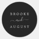 These minimalist black and white wedding envelope seals are perfect for a boho wedding. The modern romantic design features classic white typography on a dark black background. Personalise the label with the names of the bride and groom.