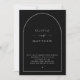 This bold and modern wedding invitation features a striking black background with white typography framed in a contemporary arch design. The front highlights your wedding details in a clean minimalist layout, while the back includes space for a personal photo and a QR code linking directly to your wedding website. Perfect for chic, formal, or modern weddings, this invitation adds sophistication and contrast while keeping the design timeless and easy to read. Ideal for black tie weddings, elegant receptions, and classic gatherings. Available as both a printed card and a digital download. This versatile design offers the perfect blend of style and functionality.
