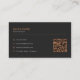Make a striking professional impression with this modern design featuring a sophisticated black textured background and elegant copper accents. The front showcases a bold geometric arch logo space set against a rich, tactile-inspired backdrop to instantly capture attention. On the reverse side, clean typography organizes your essential contact information alongside a prominent, scannable area to connect clients directly to your digital platforms. This contemporary aesthetic is perfectly suited for brand strategists, designers, and corporate executives who want to stand out. Upgrade your networking approach with a functional layout that blends premium visual appeal with modern digital convenience.