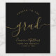 Minimalist "Cheers to the Grad" graduation wine bottle label in simple gold and black text with white background. Featuring modern and elegant handwriting typography style. All text is customisable. Personalise with name, school name, and year of graduation. Perfect for graduation gift or graduation party favour.