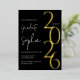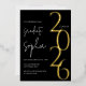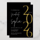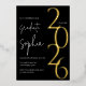 Modern gold foil graduation invitation with a black background. Featuring the graduating year in a chic gold, rose gold, or silver foil.