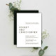 Elegantly simple minimalist wedding invitation featuring clean typography and a bold modern composition. Design features wedding details aligned against shifted margins, highlighting the couple's names as an isolated text block. Design is stripped of extraneous ornamentation thereby prioritising functionality, balance and harmony. Perfect for couples that embrace utmost simplicity, elegance and style. Back of card is left blank, with a solid colour background. Design is available in a curated selection of modern colours and is easily personalised. Please share a comment and reach out for assistance in personalisation or for any customisations. We look forward to hearing from and working with you!
