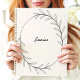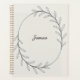 This elegant design features a minimalist black line-drawn wreath of delicate leaves encircling a customisable name in a stylish script. The clean and modern aesthetic makes it perfect for professionals, students, or anyone who appreciates simple and sophisticated designs. Ideal for organising tasks, journalling, or planning with a touch of understated charm. A timeless design combining functionality and beauty.