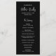 Modern black wedding program featuring a simple design with your names in an elegant script typography and your event details in a minimalist sans serif font. This chic wedding program works well with any style of wedding.