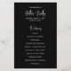 Modern black budget wedding program flyer featuring a simple design with your names in an elegant script typography and your event details in a minimal sans serif font. This chic wedding program works well with any style of wedding.