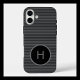 This sophisticated phone case features a sleek black and grey linear pattern accented by a bold circular monogram that can be personalised with any initial. The clean lines and balanced contrast give it a modern, professional look while keeping the design understated and elegant. Ideal for those who love timeless minimalism with a personalised touch.