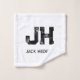 MINIMALIST BLACK TWO LETTER MONOGRAM NAME WHITE BATH TOWEL SET