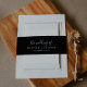 This minimalist black wedding invitation belly band is perfect for a boho wedding. The modern romantic design features classic white typography on a dark black background. Personalise these paper belly bands with the names of the bride and groom, and the wedding date.