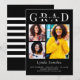 Minimalist Black White 3 Photo Graduation Invitation