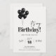 Celebrate in chic, modern style with this black balloon birthday invitation. A clean black-and-white palette pairs glittery balloon art with elegant “It’s my Birthday!” script for a minimalist, gender-neutral look. Designed for adult parties and perfect for milestone celebrations like 18th, 21st, 30th, 40th, 50th, or 60th birthdays.