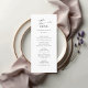 Printed on premium-quality paper, this customisable menu allows you to highlight your first course, entrée, dessert, and beverage selections in a beautifully clean layout that guests will love. Its simple yet sophisticated design pairs seamlessly with matching invitations, ceremony programs, table numbers, RSVP cards, and thank-you cards for a complete stationery suite.
