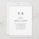 Minimal chic wedding invitations featuring a white invite with a simple black line top & bottom, your initials, names in a elegant script font, and your wedding information.