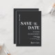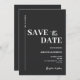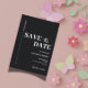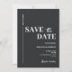 Celebrate love in sleek, modern style with this minimalist black and white Save the Date wedding invitation. Featuring bold typography and clean lines on a solid black background, this design offers timeless elegance for contemporary couples.