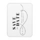Trendy, modern, and elegant this black and white simplistic design with it's thin scroll makes the perfect announcement to Save The Date for your upcoming wedding. Easily customise with important details of choice.