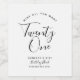 Minimalist "Twenty One - Wine All You Want" wine bottle label in simple black and white with modern, chic and elegant handwriting typography style. All text is customisable. Personalise with age, name, year of birth, and short greetings. Perfect 21st birthday gift or party favour.