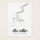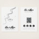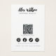 This jewellery display card features a minimalist, simplified drawing of female long, wavy hair and full lips designed in black and white for a simple, clean, elegant look. It includes spots to showcase earrings on her ears. The card is customizable with your name, website, slogan, and social media icons, plus a QR code for easy digital access.