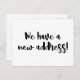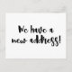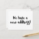 This modern minimalist we moved announcement postcard features fun brush lettering in black and white.