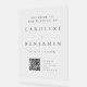 Greet your guests in style with this sleek and modern wedding welcome sign. Featuring a minimalist layout with elegant serif typography, this sign includes a QR code for easy access to your digital wedding program. The clear acrylic-like design adds a sophisticated and contemporary touch, perfect for modern weddings. Personalise with your names, wedding date, and location for a unique and functional keepsake.