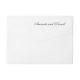 Black & White. Bold & Striking. Trendy and sophisticated. Crisp clean white in striking contrast to the bold black script. The calligraphy script featured for the couple's names is an elaborate roundhand script with looped strokes and strongly flourished capital letters.