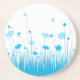 Minimalist Blue and White Poppies Meadow Floral Coaster