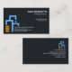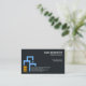 A plain dark blue cover is accentuated by an abstract building block design at the left face of the card. This frame houses your business name and contact details. Northwards to the upper right corner lies your prestigious name, job title and slogan option.