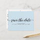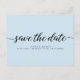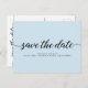 Minimalist Blue Engagement Save The Date Script Postcard