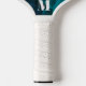 This modern pickleball paddle design features a bluish green and sparkles background, with your initial in bold white text for a look that is simple and stylish, yet professional.