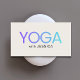Elegant fully customizable business card template with old white background and blue bold YOGA text. Minimal cool design, perfect for yoga studio, yoga instructor.