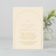 Celebrate your special day with elegance and simplicity by choosing our Minimalist Boho Cream Arch Wedding Foil Invitation. This unique design blends a modern minimalist style with bohemian accents, featuring a stunning gold arch motif. The delicate foil detailing adds a touch of luxury and sophistication, making it a perfect choice for couples seeking a refined yet bohemian aesthetic. With its timeless design, this invitation sets the tone for a memorable wedding celebration. Complete this boho invitation suite with the coordinating products from our Minimalist Terracotta Boho Wedding Collection.