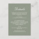 Minimalist Boho Green Elegant Wedding Details Enclosure Card