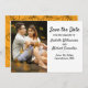 The front of the card is very simple just your Boho couple's photo and a breezy and airy font combination. The back of the Save the Date card is Autumn orange with large leaves forming a horizontal pattern. You can change the background colour to anything you like when you replace the template text with your own.