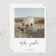 Minimalist, boho-designed wedding invitations with a photo of a happy couple and a beautiful script of their names. This invitation is classy, elegant, and trendy.