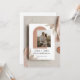 Modern minimalist boho wedding invitation with photo and terracotta arch design, featuring earthy tones and elegant typography, fully editable template.