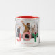 Modern minimalist bold script Joy 3 photo collage holiday two-tone coffee mug features a simple, modern design paired with a bold San serif font, 3 photos with family name. Personalise it with your own photos and name.