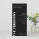 Black Minimalist Wedding Programs will help you to share details of the ceremony and wedding party with your guests. This customisable ceremony programs is great for modern wedding, feature white bold letters and minimalist typography against black background. Matching black and white wedding Invitation, rsvp card, enclusure card and day-off stationery is also available, check out "Black and white Bold letters wedding stationery and decor" collection in my store Wowweds.